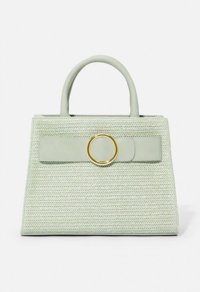 Material: Straw/Faux Leather Size: 13”L x 10”H x 7”D Hardware color: Gold Handle drop measurement : 5" Removable Adjustable Shoulder Strap Pockets: 1 interior pocket, 1 interior zip Closure: Magnetic snap